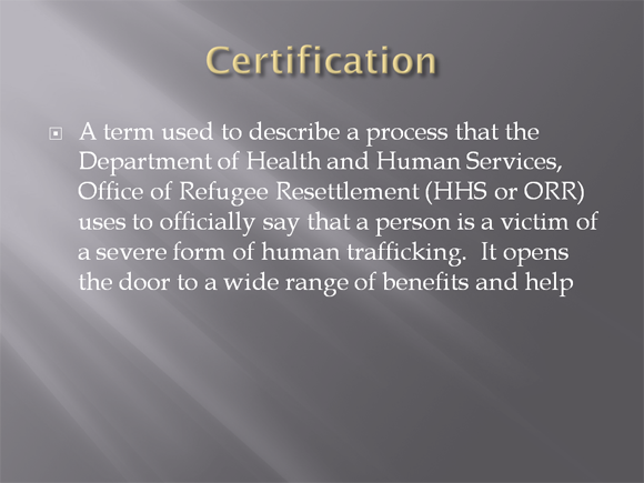 Thank you for completing the Human Trafficking Training Course. Please click the button below to get your certificate.
